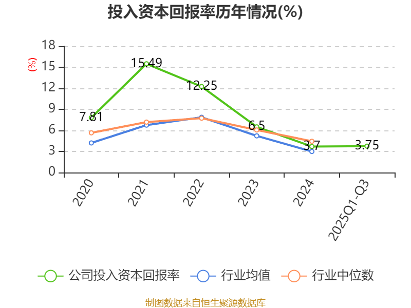 盈利能力方面, 2025年前三季度公司加权平均净资产收益率为5.62%,同比上升2.31个百分点。公司2025年前三季度投入资本回报率为3.75%,较上年同期上升1.1个百分点。