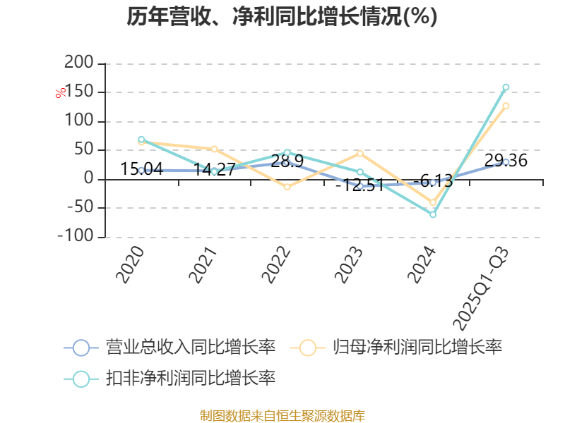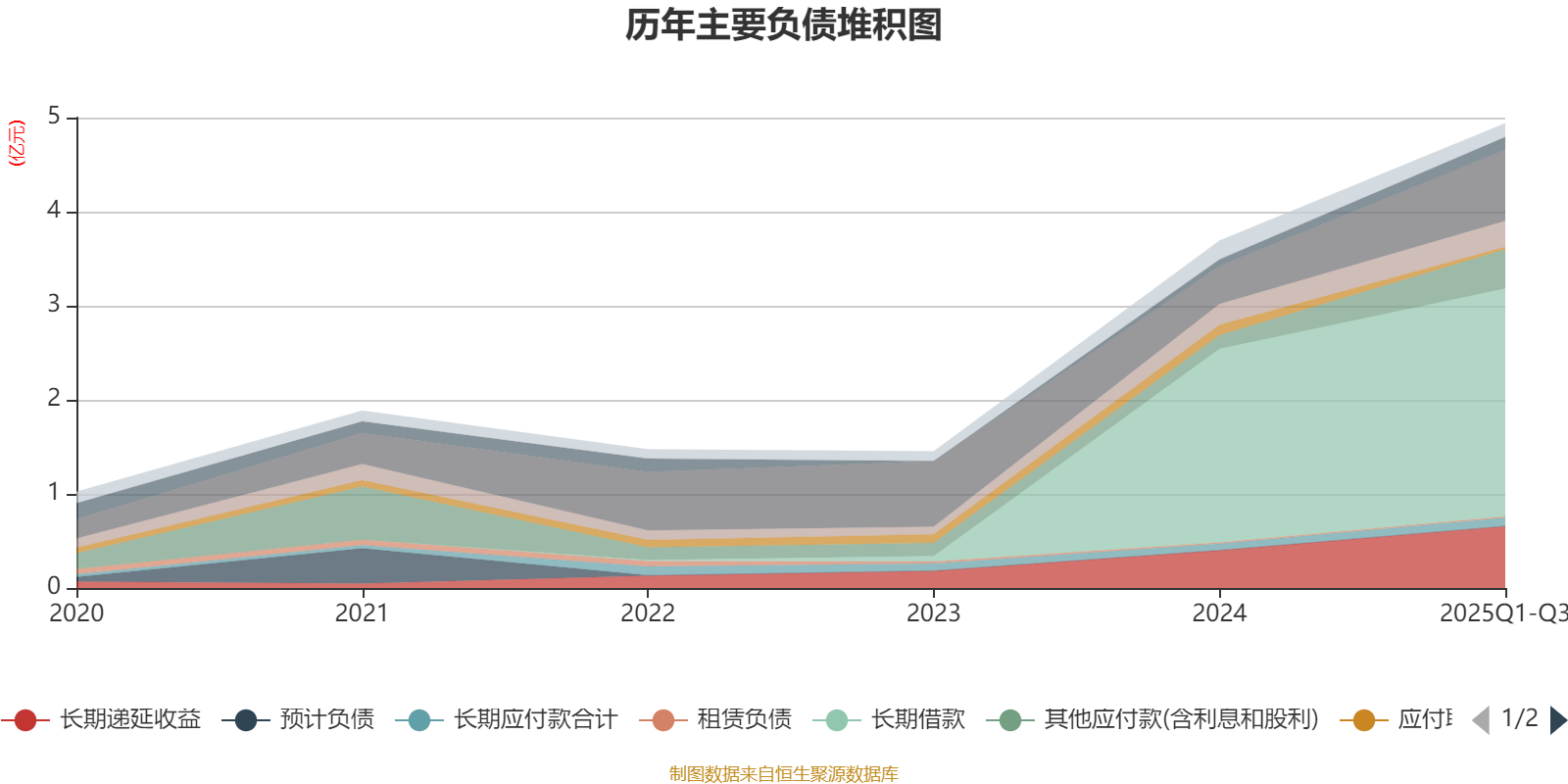 负债重大变化方面,截至2025年三季度末,公司应付票据及应付账款较上年末增加86.78%,占公司总资产比重上升2.28个百分点;其他应付款(含利息和股利)较上年末增加188.04%,占公司总资产比重上升1.93个百分点;长期递延收益较上年末增加64.34%,占公司总资产比重上升1.58个百分点;长期借款较上年末增加17.64%,占公司总资产比重上升0.85个百分点。