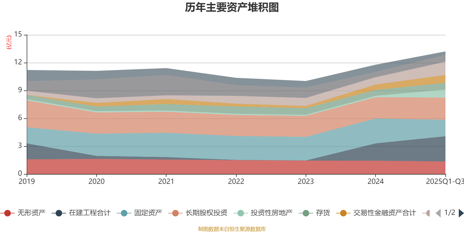 资产重大变化方面,截至2025年三季度末,公司固定资产较上年末减少33.37%,占公司总资产比重下降9.23个百分点;投资性房地产较上年末增加452.48%,占公司总资产比重上升5.16个百分点;在建工程合计较上年末增加45.34%,占公司总资产比重上升4.68个百分点;其他非流动资产较上年末减少99.61%,占公司总资产比重下降4.29个百分点。