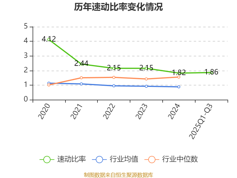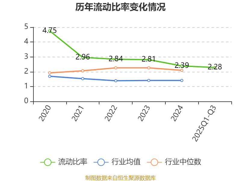 2025年前三季度,公司流动比率为2.28,速动比率为1.86。