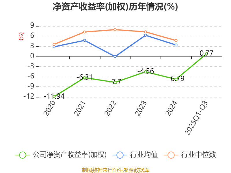 盈利能力方面, 2025年前三季度公司加权平均净资产收益率为0.77%,同比上升3.56个百分点。公司2025年前三季度投入资本回报率为1.94%,较上年同期上升3.26个百分点。