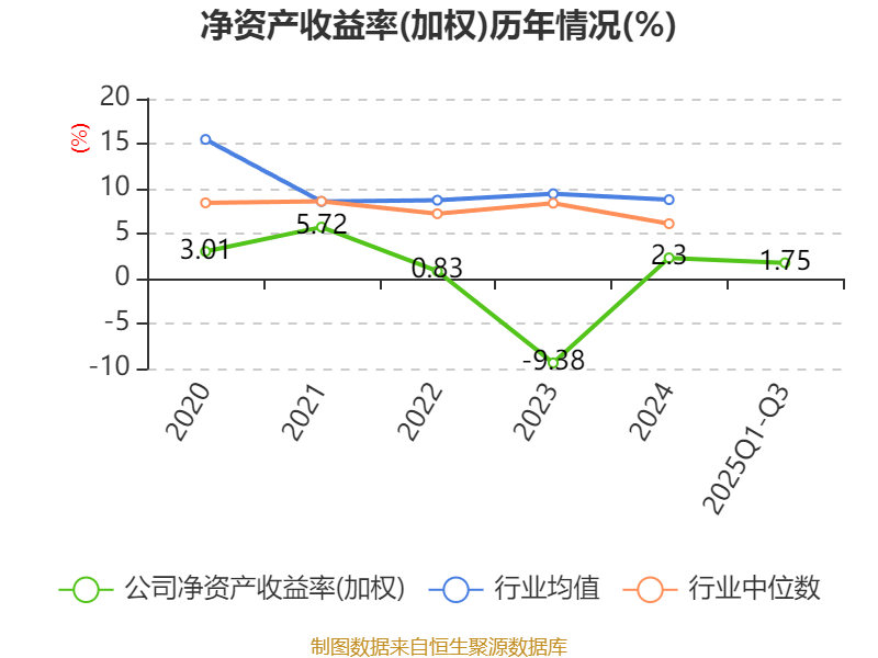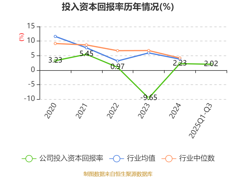盈利能力方面, 2025年前三季度公司加权平均净资产收益率为1.75%,同比上升1.64个百分点。公司2025年前三季度投入资本回报率为2.02%,较上年同期上升1.84个百分点。