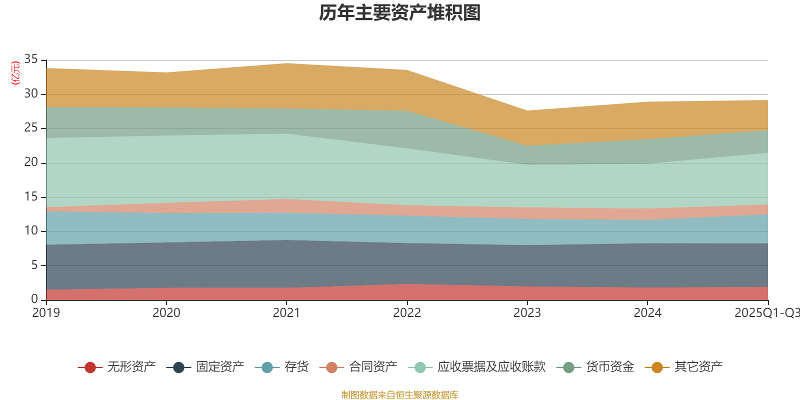 资产重大变化方面,截至2025年三季度末,公司应收票据及应收账款较上年末增加15.24%,占公司总资产比重上升3.22个百分点;应收款项融资较上年末减少74.71%,占公司总资产比重下降3.15个百分点;存货较上年末增加25.2%,占公司总资产比重上升2.84个百分点;划分为持有待售的资产较上年末减少100%,占公司总资产比重下降1.18个百分点。