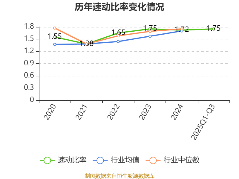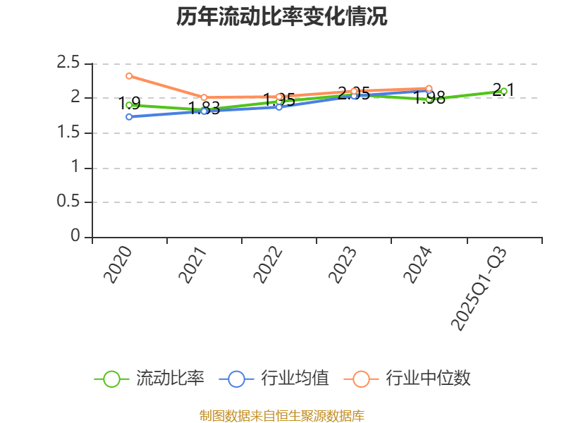 2025年前三季度,公司流动比率为2.1,速动比率为1.75。