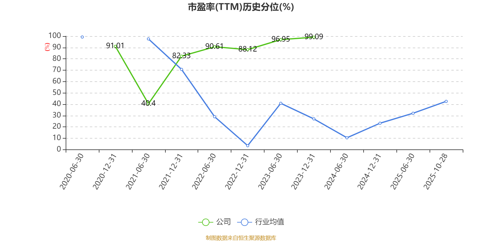 市盈率、市净率为负时,不显示当期分位数,会导致折线图中断。