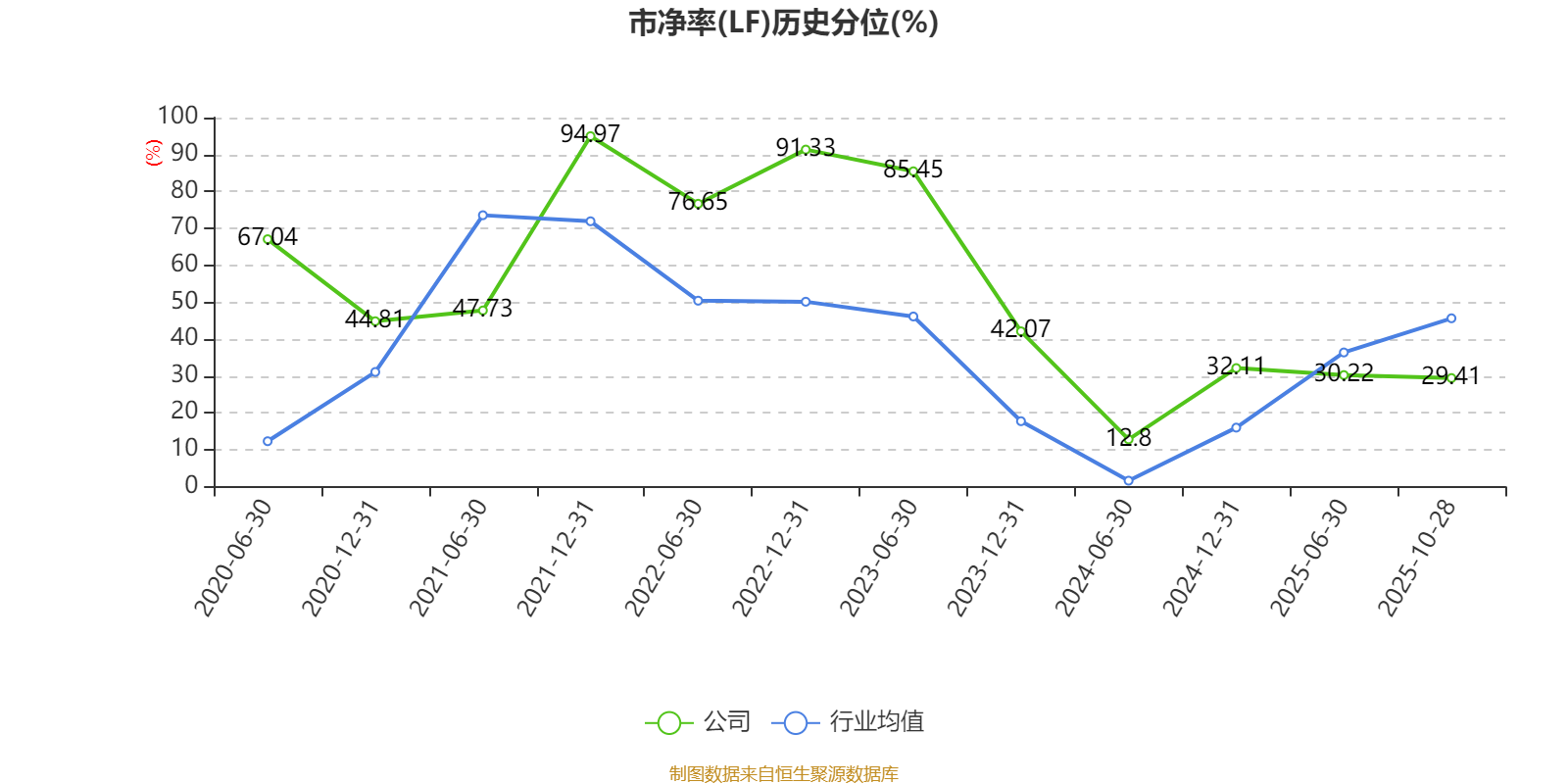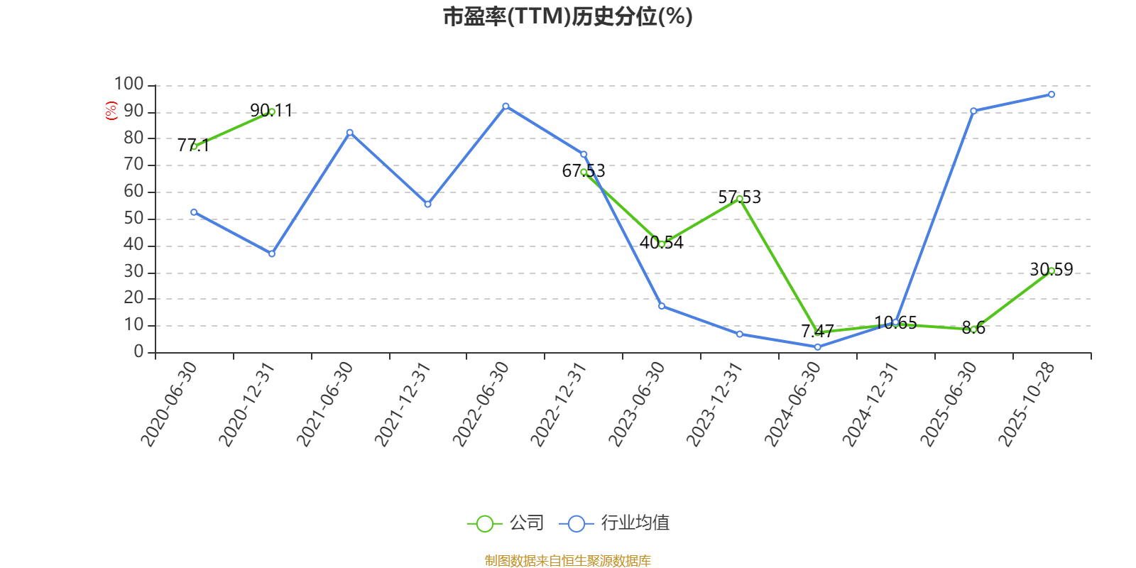 市盈率、市净率为负时,不显示当期分位数,会导致折线图中断。