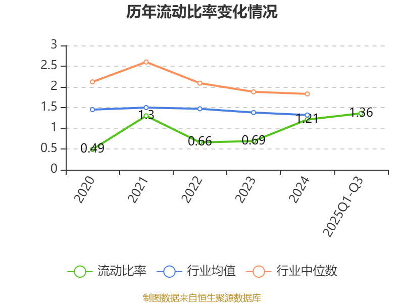 2025年前三季度,公司流动比率为1.36,速动比率为1.18。