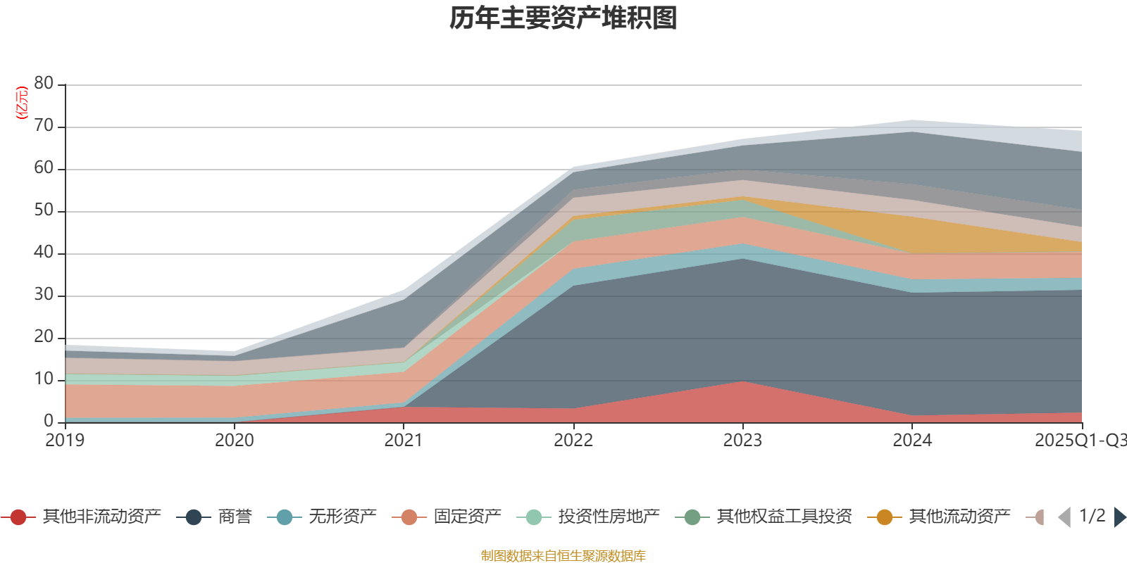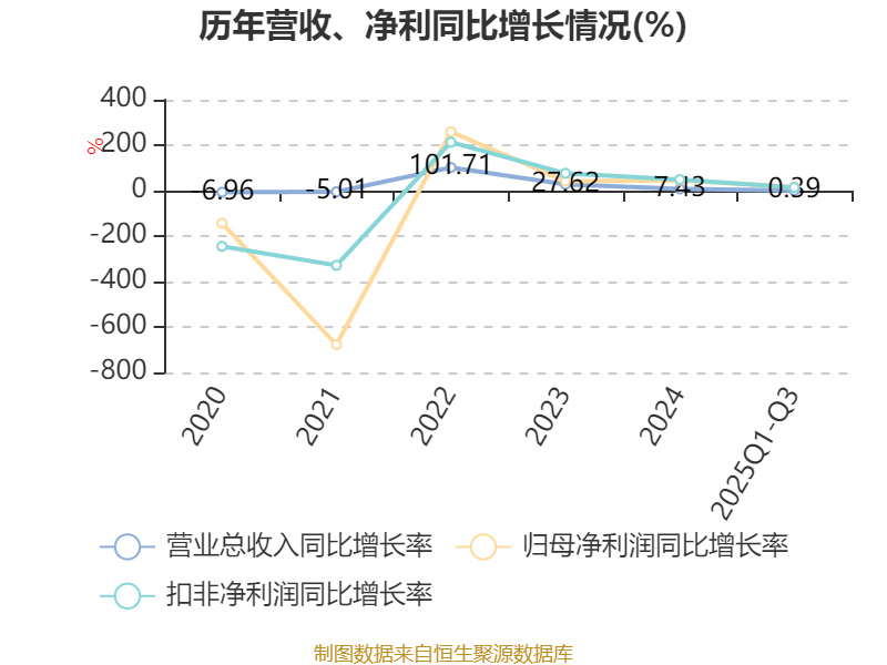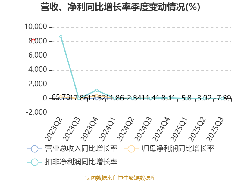 资产重大变化方面,截至2025年三季度末,公司其他流动资产较上年末减少74.21%,占公司总资产比重下降8.88个百分点;交易性金融资产合计较上年末增加238.87%,占公司总资产比重上升3.53个百分点;货币资金较上年末增加10.09%,占公司总资产比重上升2.46个百分点;商誉较上年末没有变化,占公司总资产比重上升1.51个百分点。