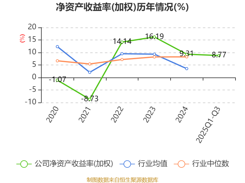 盈利能力方面, 2025年前三季度公司加权平均净资产收益率为8.77%,同比上升0.16个百分点。公司2025年前三季度投入资本回报率为12.03%,较上年同期上升0.2个百分点。