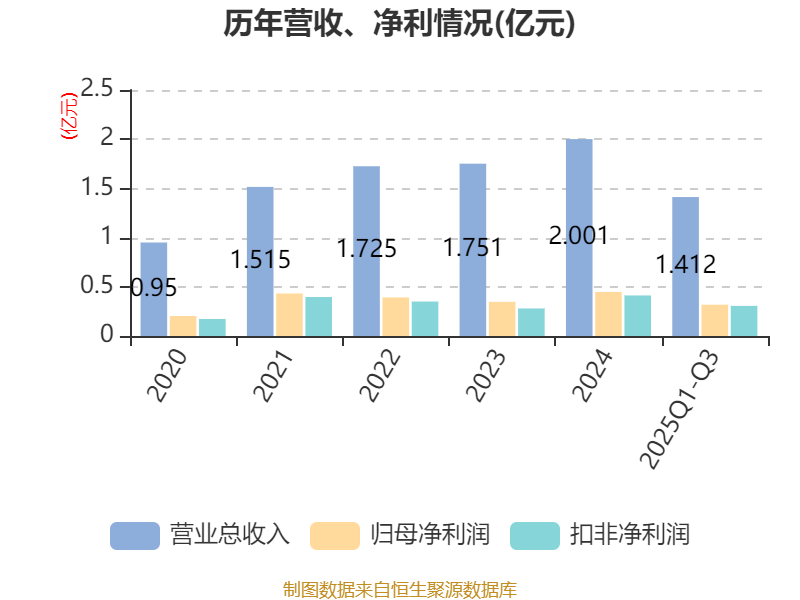 2025年前三季度,公司流动比率为9.54,速动比率为6.01。