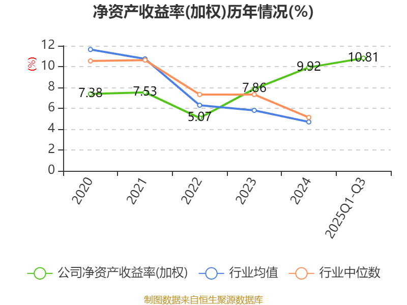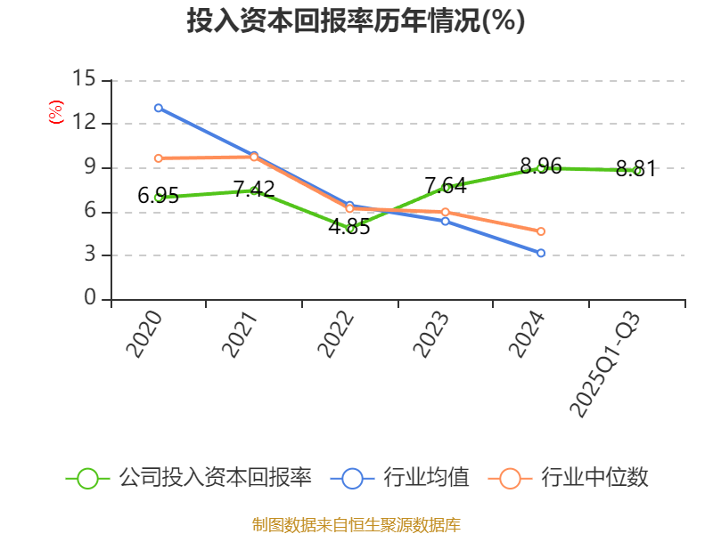盈利能力方面, 2025年前三季度公司加权平均净资产收益率为10.81%,同比上升3.59个百分点。公司2025年前三季度投入资本回报率为8.81%,较上年同期上升2.22个百分点。