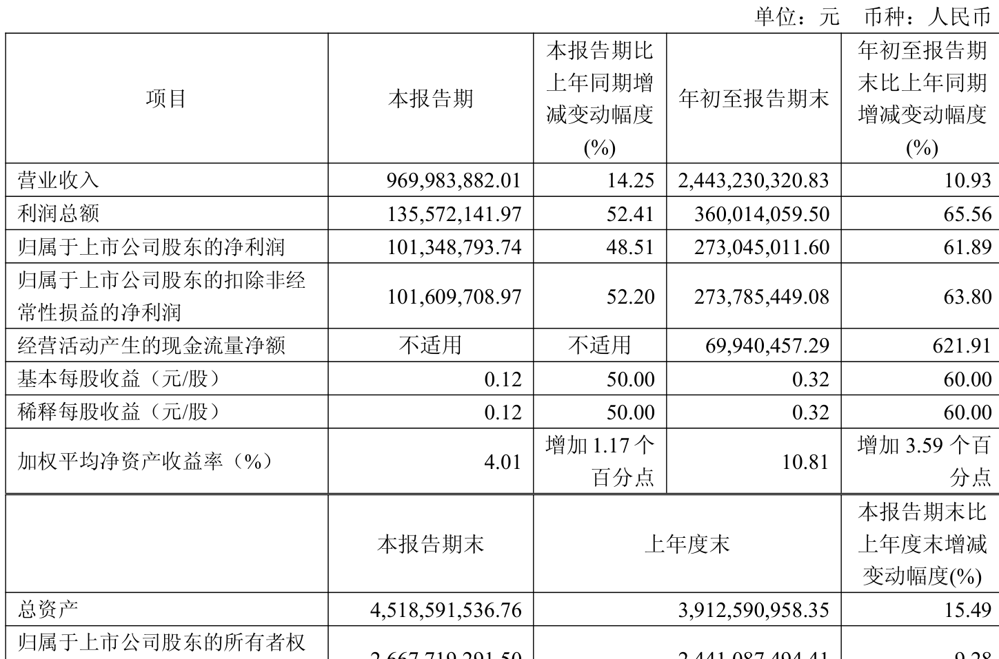 中证智能财讯银龙股份(603969)10月29日披露2025年第三季度报告。前三季度公司实现营业总收入24.43亿元,同比增长10.93%;归母净利润2.73亿元,同比增长61.89%;扣非净利润2.74亿元,同比增长63.80%;经营活动产生的现金流量净额为6994.05万元,上年同期为-1340.09万元;报告期内,银龙股份基本每股收益为0.32元,加权平均净资产收益率为10.81%。