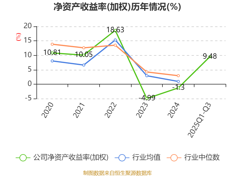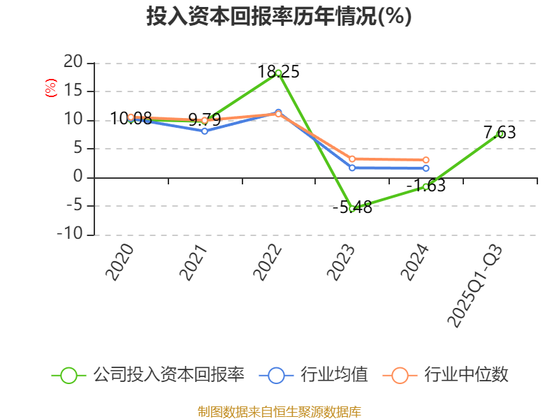 盈利能力方面, 2025年前三季度公司加权平均净资产收益率为9.48%,同比上升9.17个百分点。公司2025年前三季度投入资本回报率为7.63%,较上年同期上升7.25个百分点。