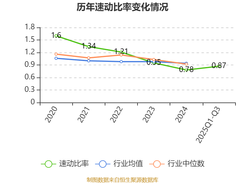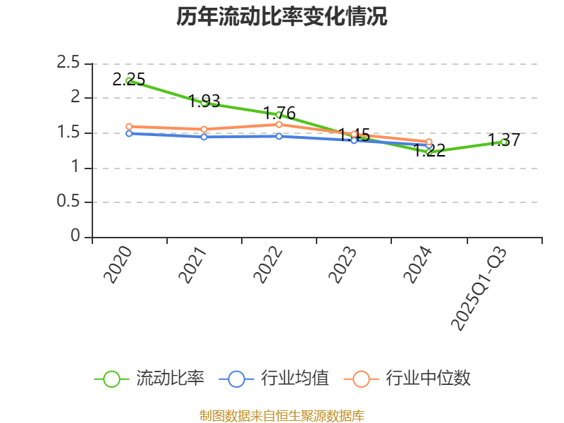 2025年前三季度,公司流动比率为1.37,速动比率为0.87。
