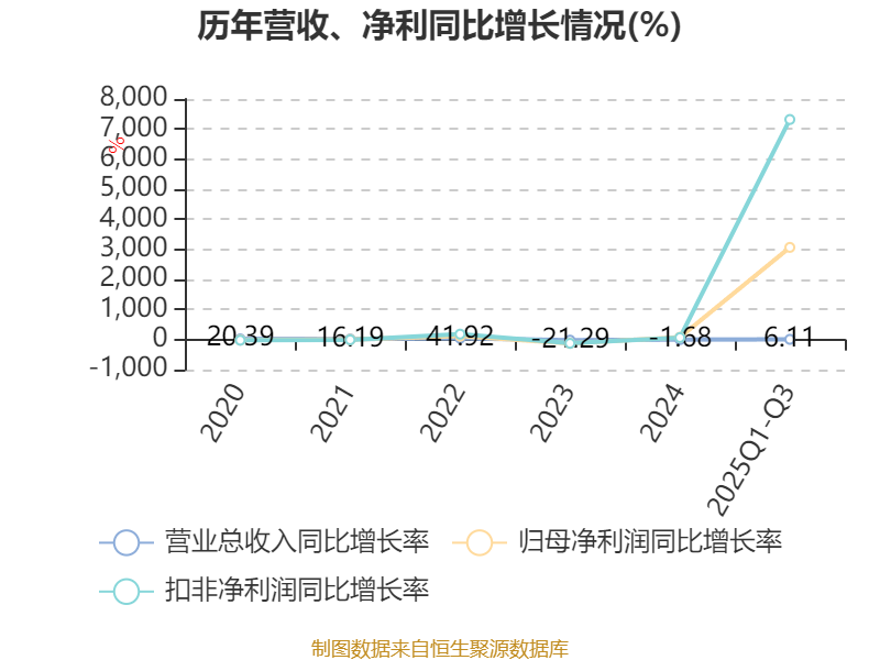 资产重大变化方面,截至2025年三季度末,公司货币资金较上年末减少18%,占公司总资产比重下降3.88个百分点;交易性金融资产合计较上年末增加1425.23%,占公司总资产比重上升3.43个百分点;应收票据及应收账款较上年末增加29.38%,占公司总资产比重上升3.03个百分点;存货较上年末增加13.28%,占公司总资产比重上升1.68个百分点。