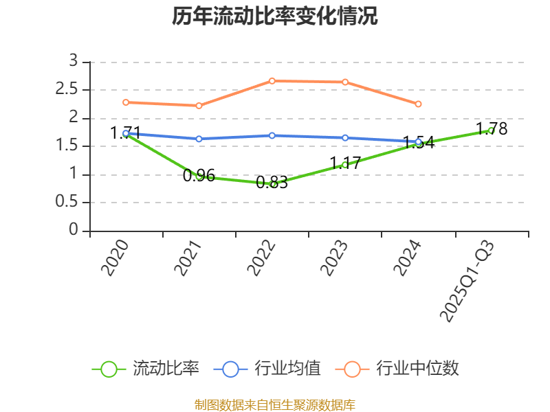 2025年前三季度,公司流动比率为1.78,速动比率为1.28。