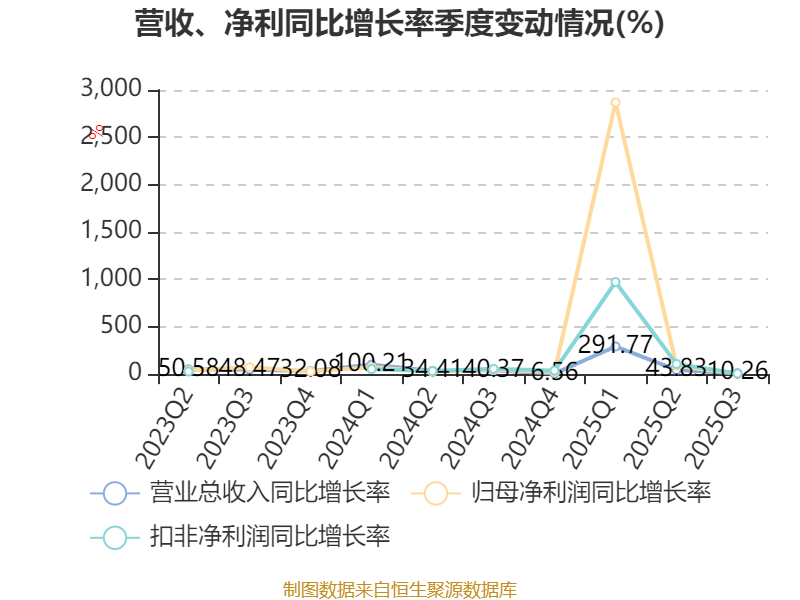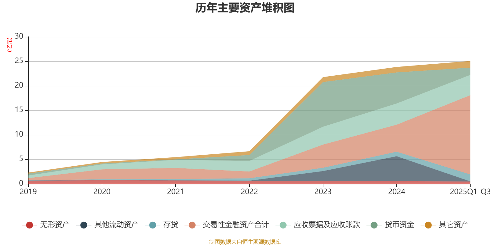 资产重大变化方面,截至2025年三季度末,公司交易性金融资产合计较上年末增加193.85%,占公司总资产比重上升41.55个百分点;其他流动资产较上年末减少99.81%,占公司总资产比重下降21.38个百分点;货币资金较上年末减少76.81%,占公司总资产比重下降20.72个百分点;存货较上年末增加53.14%,占公司总资产比重上升1.76个百分点。