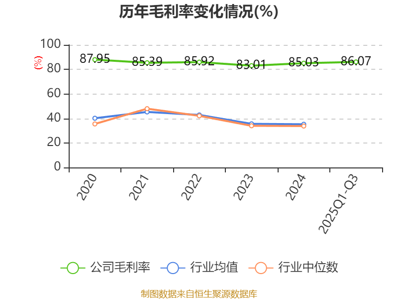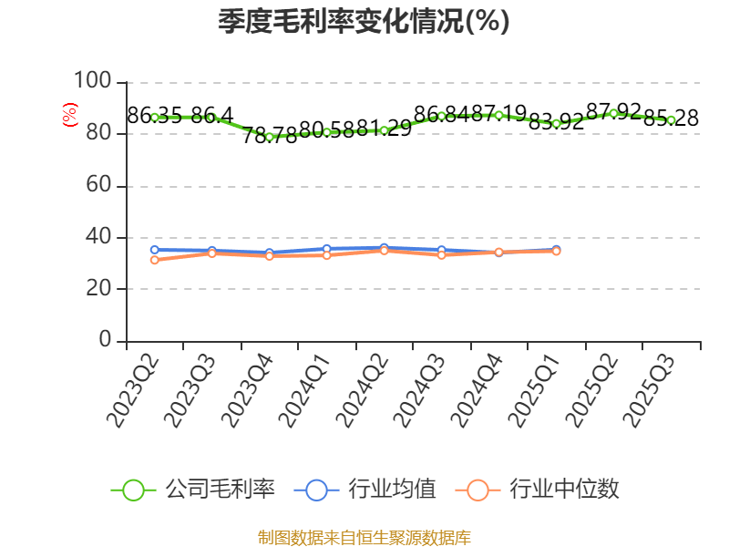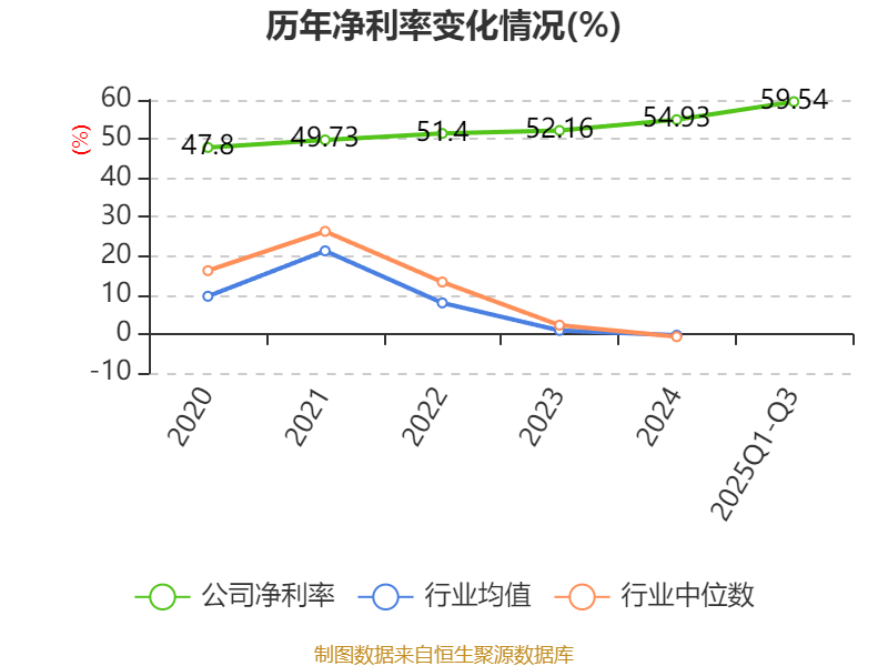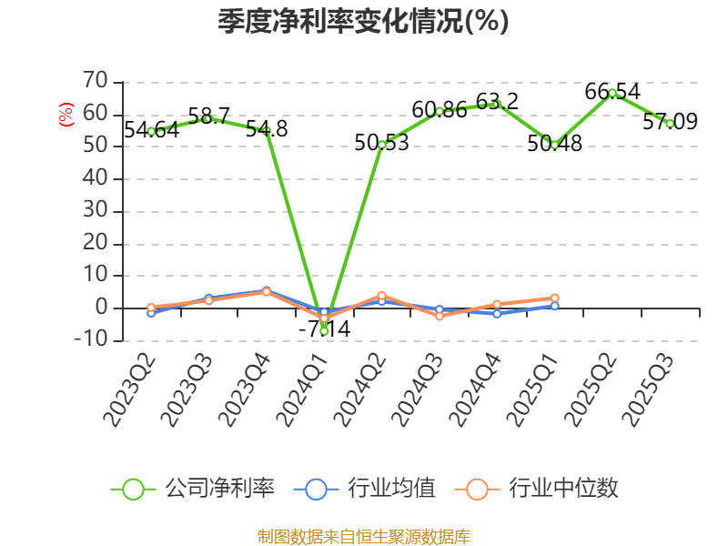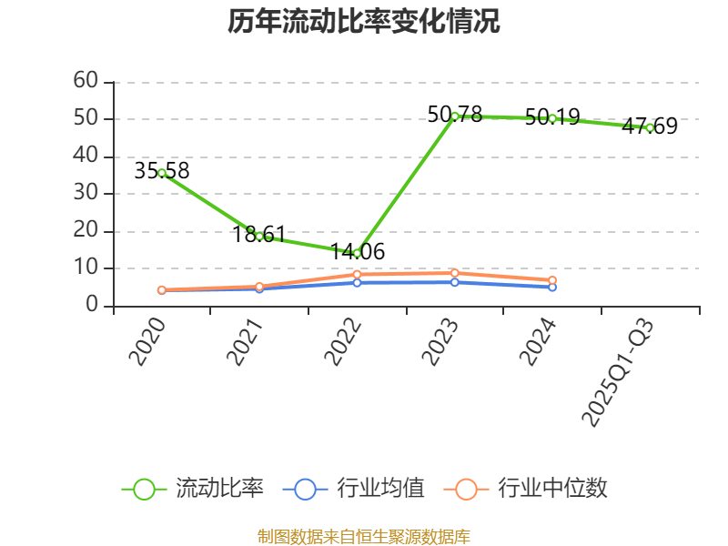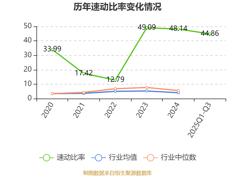 2025年前三季度,公司流动比率为47.69,速动比率为44.86。