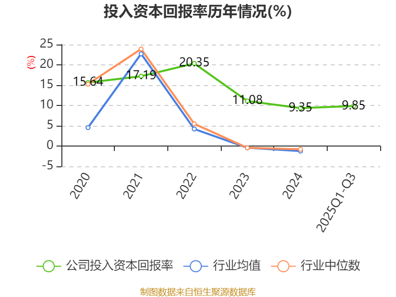 盈利能力方面, 2025年前三季度公司加权平均净资产收益率为9.96%,同比上升3.53个百分点。公司2025年前三季度投入资本回报率为9.85%,较上年同期上升3.97个百分点。
