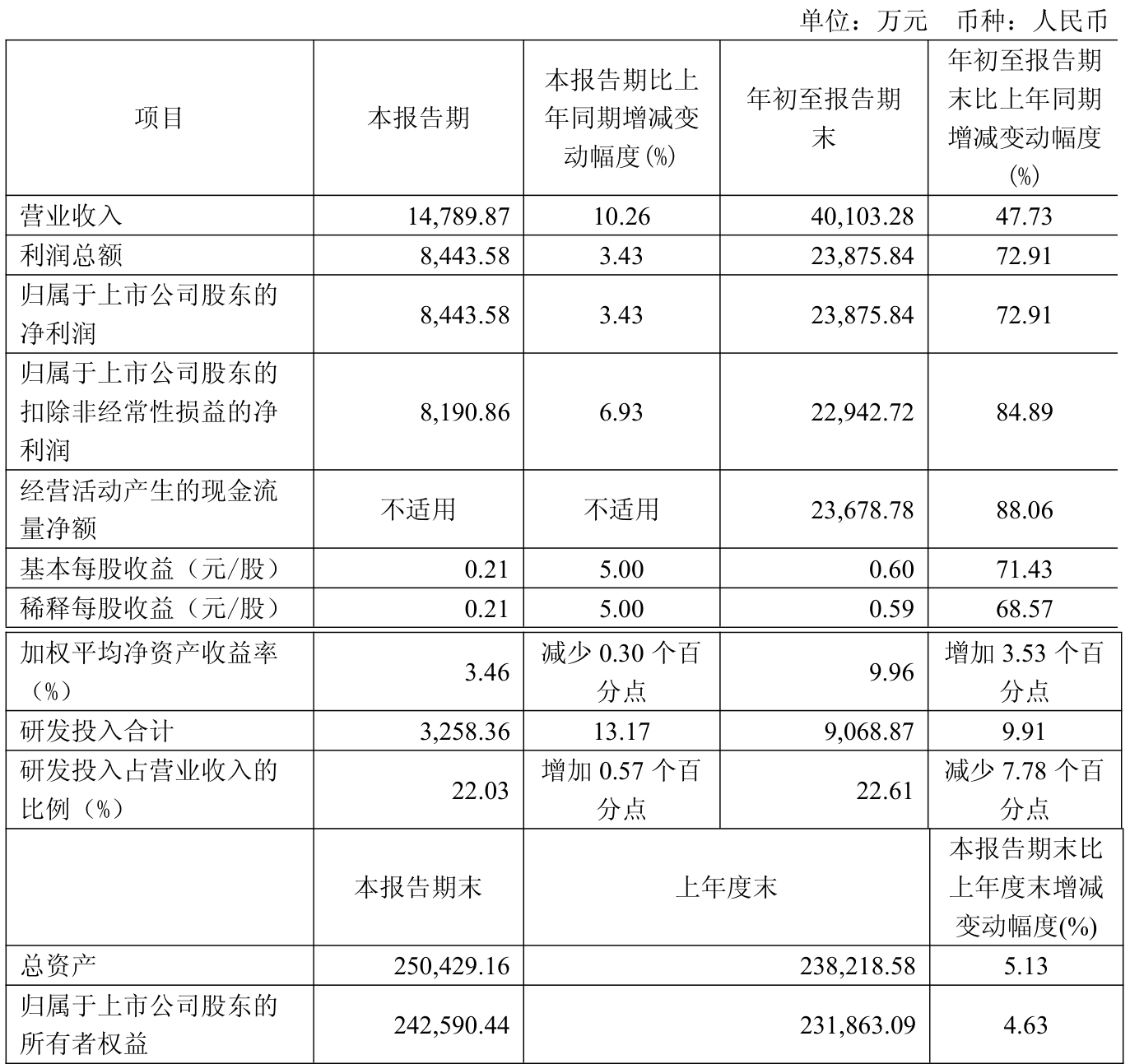 中证智能财讯芯动联科(688582)10月29日披露2025年第三季度报告。前三季度公司实现营业总收入4.01亿元,同比增长47.73%;归母净利润2.39亿元,同比增长72.91%;扣非净利润2.29亿元,同比增长84.89%;经营活动产生的现金流量净额为2.37亿元,同比增长88.06%;报告期内,芯动联科基本每股收益为0.6元,加权平均净资产收益率为9.96%。