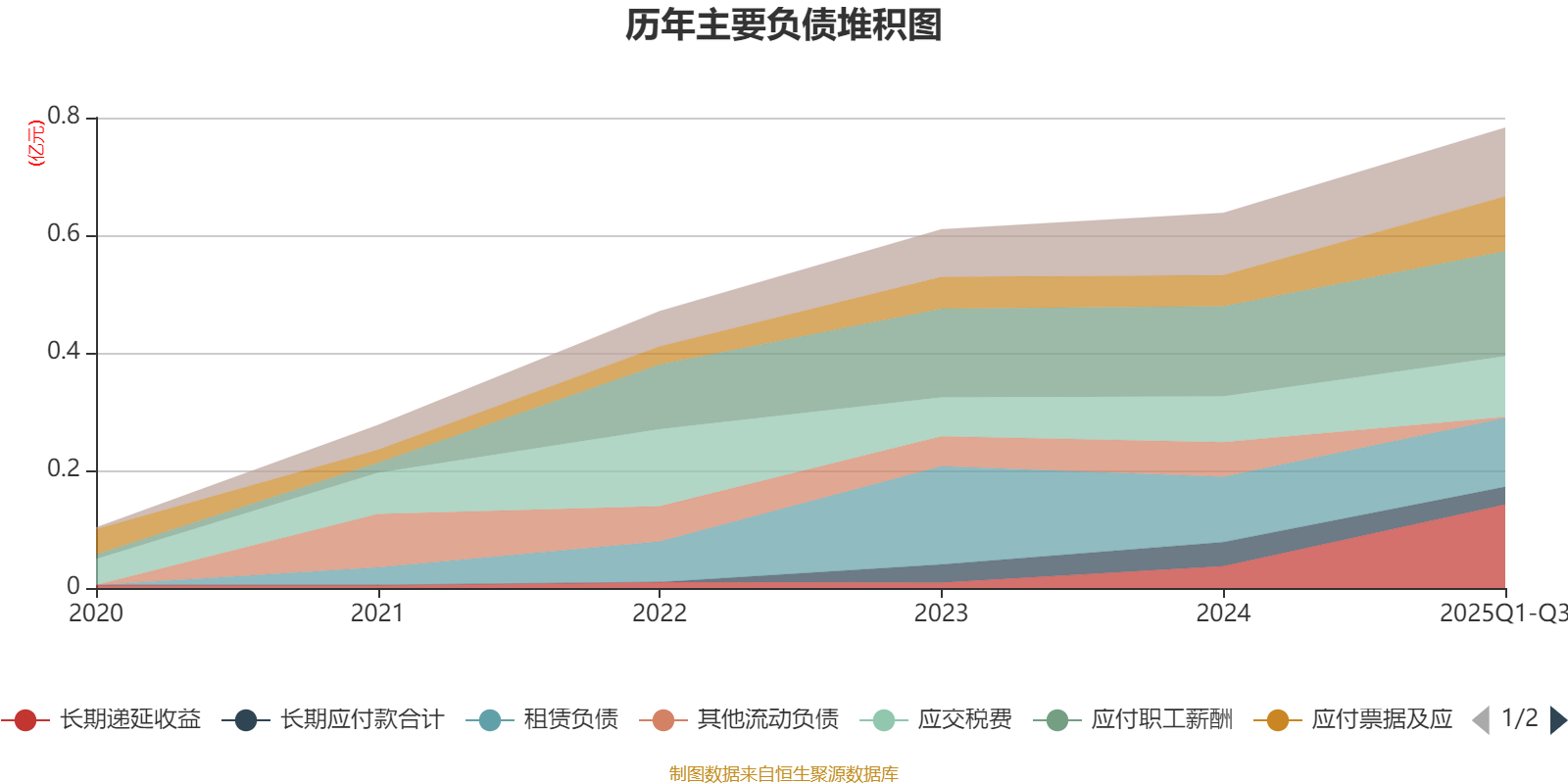 负债重大变化方面,截至2025年三季度末,公司长期递延收益较上年末增加285.67%,占公司总资产比重上升0.41个百分点;其他流动负债较上年末减少96.65%,占公司总资产比重下降0.24个百分点;应付票据及应付账款较上年末增加77.65%,占公司总资产比重上升0.15个百分点;应交税费较上年末增加32.74%,占公司总资产比重上升0.09个百分点。