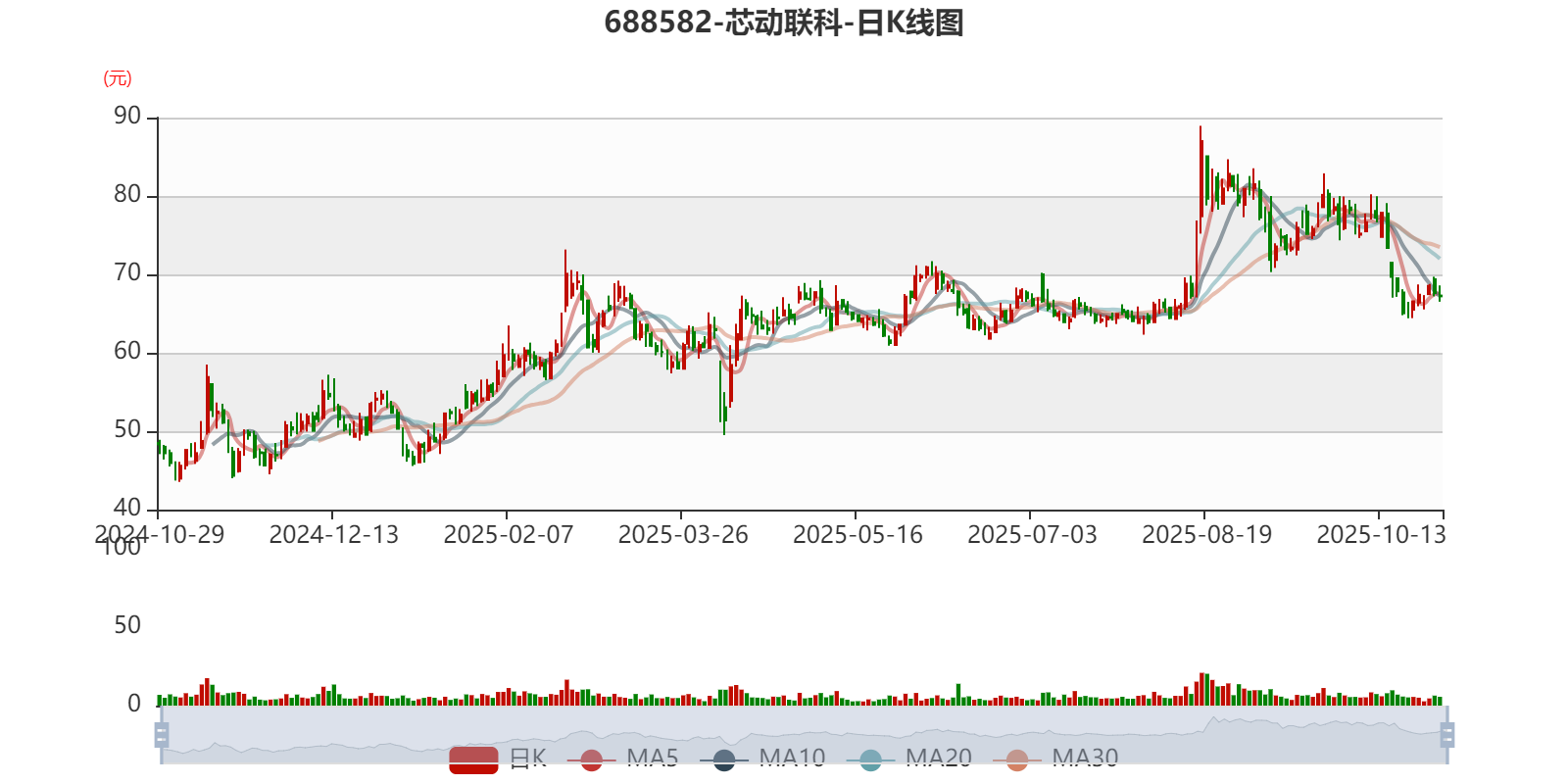 以10月28日收盘价计算,芯动联科目前市盈率(TTM)约为83.41倍,市净率(LF)约11.1倍,市销率(TTM)约50.42倍。