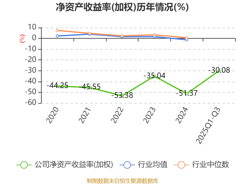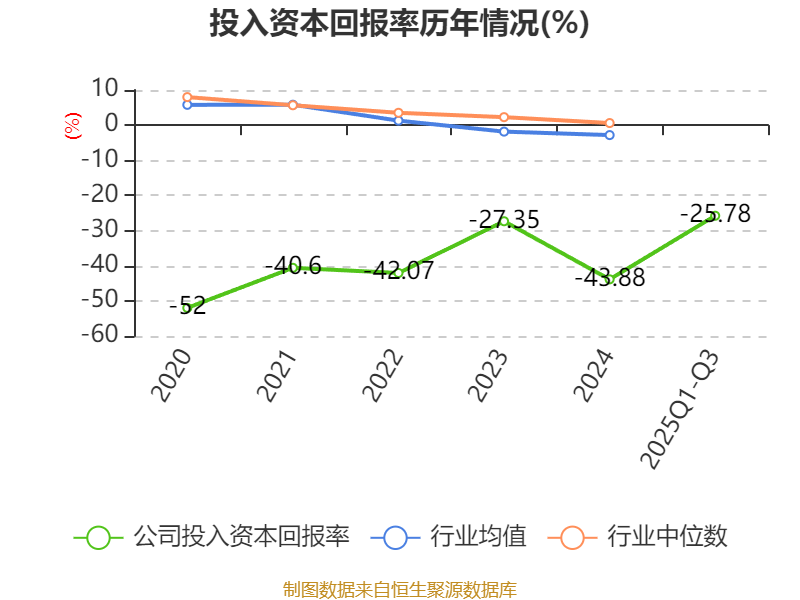 盈利能力方面, 2025年前三季度公司加权平均净资产收益率为-30.08%,同比上升5.23个百分点。公司2025年前三季度投入资本回报率为-25.78%,较上年同期上升4.94个百分点。