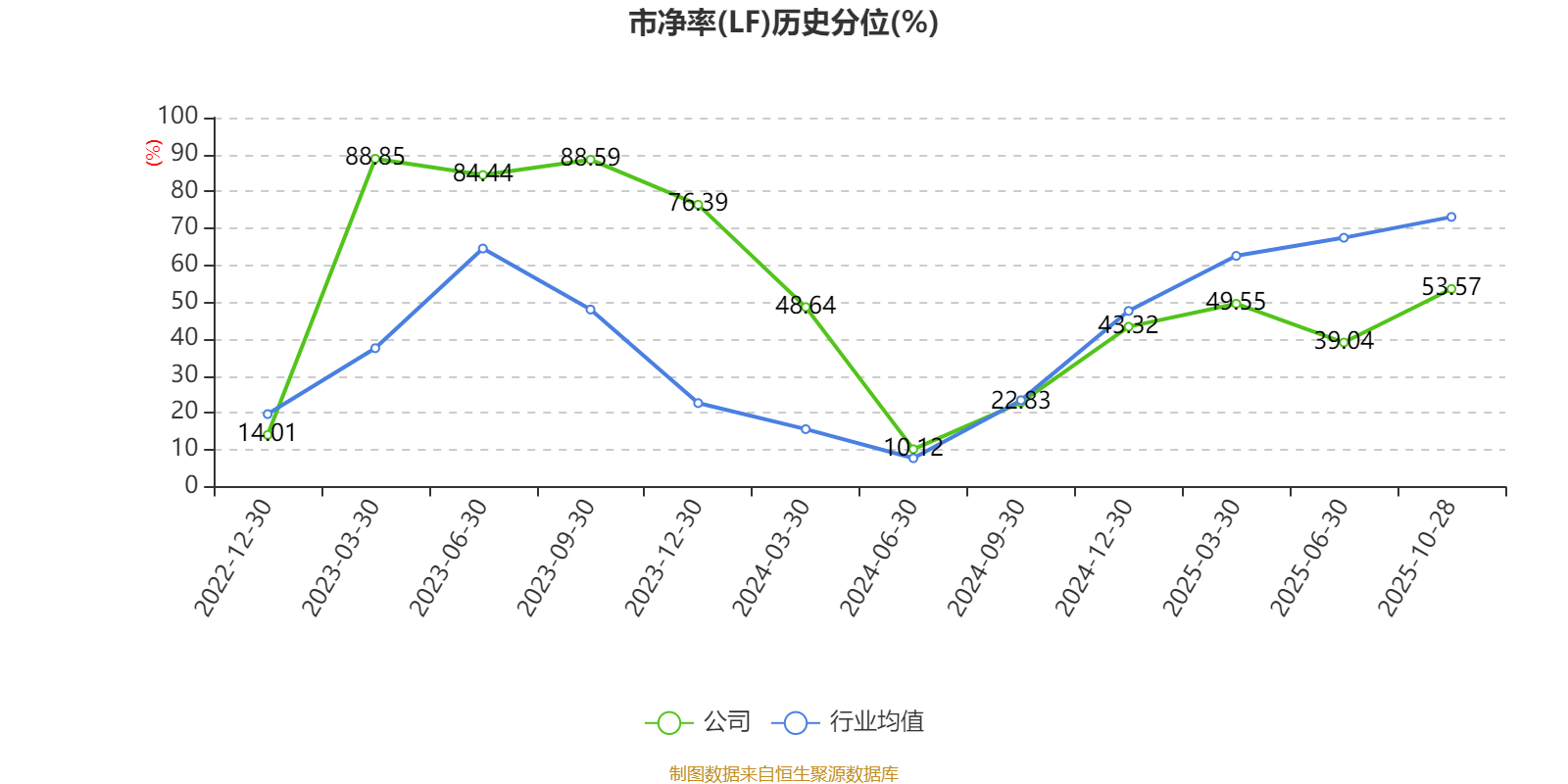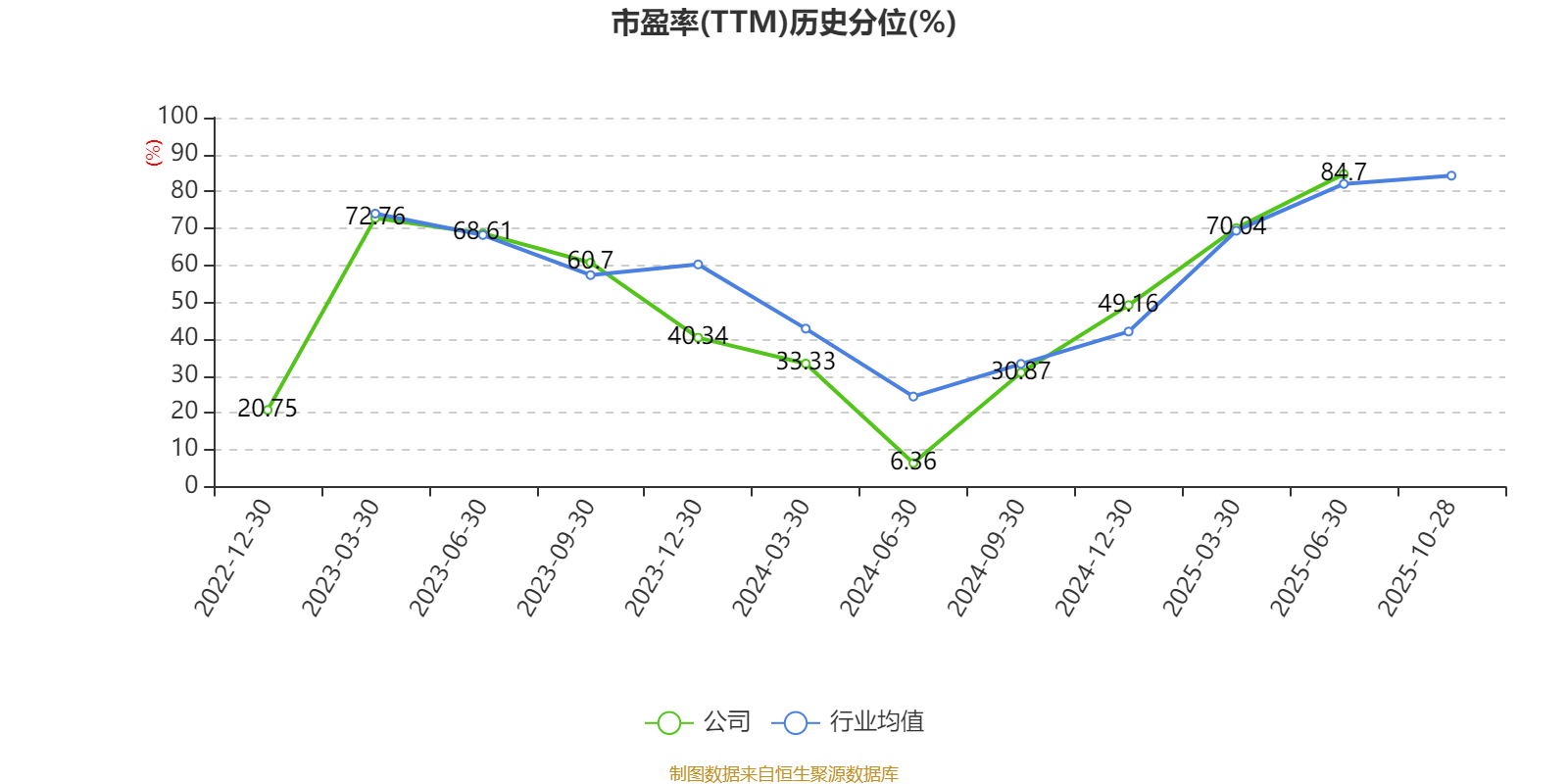 市盈率、市净率为负时,不显示当期分位数,会导致折线图中断。