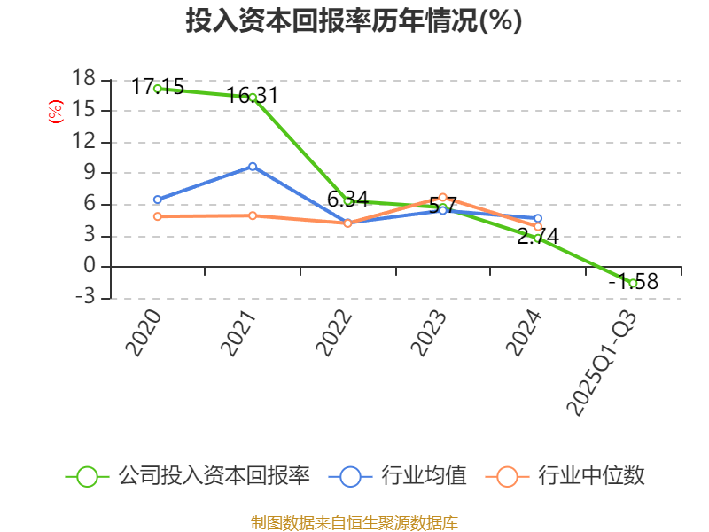 盈利能力方面, 2025年前三季度公司加权平均净资产收益率为-0.86%,同比下降4.24个百分点。公司2025年前三季度投入资本回报率为-1.58%,较上年同期下降4.83个百分点。