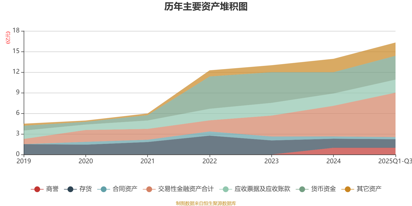 资产重大变化方面,截至2025年三季度末,公司交易性金融资产合计较上年末增加44.95%,占公司总资产比重上升7.65个百分点;存货较上年末减少5.37%,占公司总资产比重下降1.8个百分点;应收票据及应收账款较上年末增加5.34%,占公司总资产比重下降1.29个百分点;商誉较上年末没有变化,占公司总资产比重下降1.02个百分点。