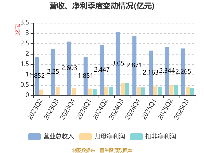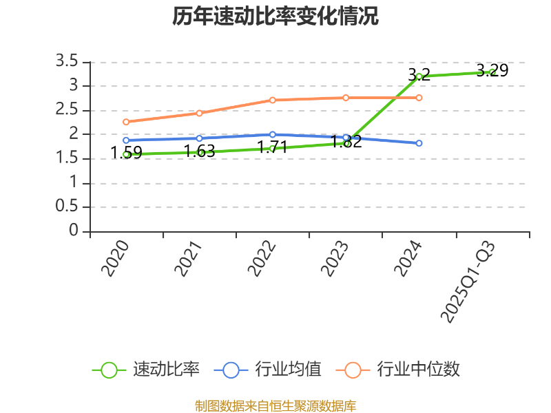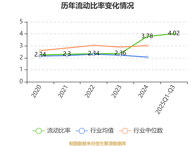 2025年前三季度,公司流动比率为4.02,速动比率为3.29。