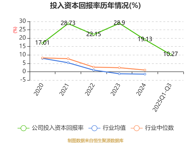 盈利能力方面, 2025年前三季度公司加权平均净资产收益率为10.56%,同比下降13.43个百分点。公司2025年前三季度投入资本回报率为10.27%,较上年同期下降4.83个百分点。
