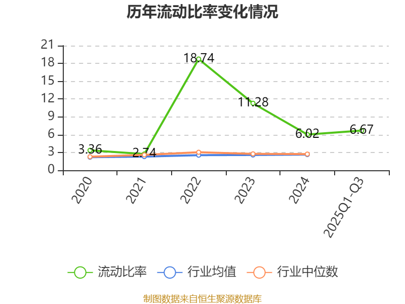 2025年前三季度,公司流动比率为6.67,速动比率为4.2。