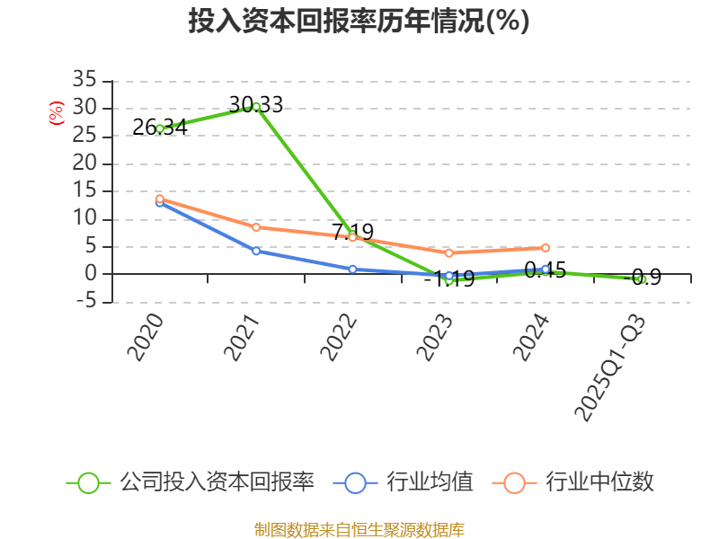 盈利能力方面, 2025年前三季度公司加权平均净资产收益率为-0.73%,同比上升0.65个百分点。公司2025年前三季度投入资本回报率为-0.9%,较上年同期上升0.92个百分点。