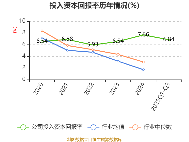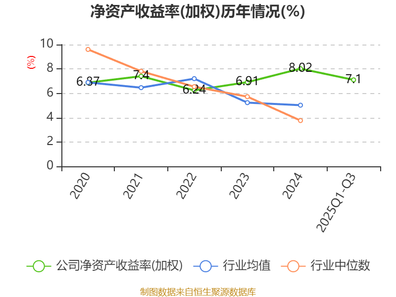 盈利能力方面, 2025年前三季度公司加权平均净资产收益率为7.1%,同比上升1.63个百分点。公司2025年前三季度投入资本回报率为6.84%,较上年同期上升1.52个百分点。