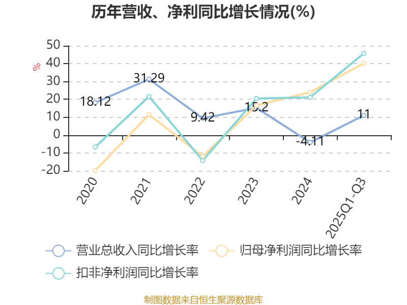 负债重大变化方面,截至2025年三季度末,公司应付票据及应付账款较上年末减少24.1%,占公司总资产比重下降2.26个百分点;合同负债较上年末减少9.71%,占公司总资产比重下降1.34个百分点;预计负债较上年末增加14.59%,占公司总资产比重上升0.61个百分点;其他应付款(含利息和股利)较上年末减少25.44%,占公司总资产比重下降0.25个百分点。