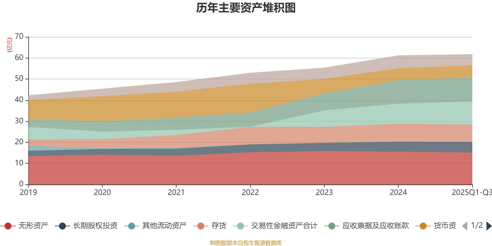 资产重大变化方面,截至2025年三季度末,公司交易性金融资产合计较上年末增加14.64%,占公司总资产比重上升2.1个百分点;应收款项融资较上年末减少96.67%,占公司总资产比重下降1.61个百分点;无形资产较上年末减少2.87%,占公司总资产比重下降0.96个百分点;存货较上年末减少3.61%,占公司总资产比重下降0.62个百分点。