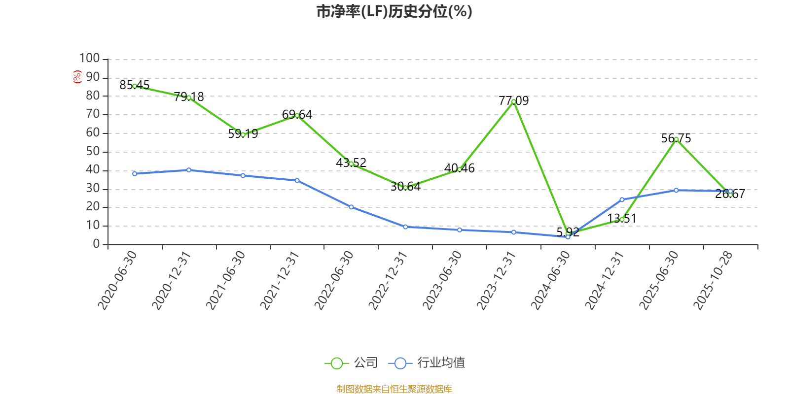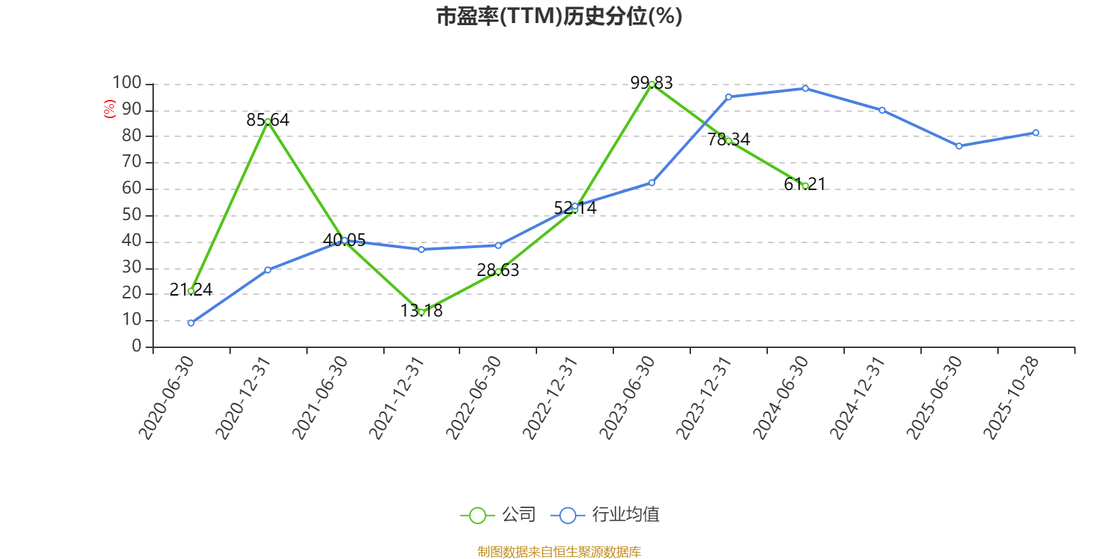 市盈率、市净率为负时,不显示当期分位数,会导致折线图中断。