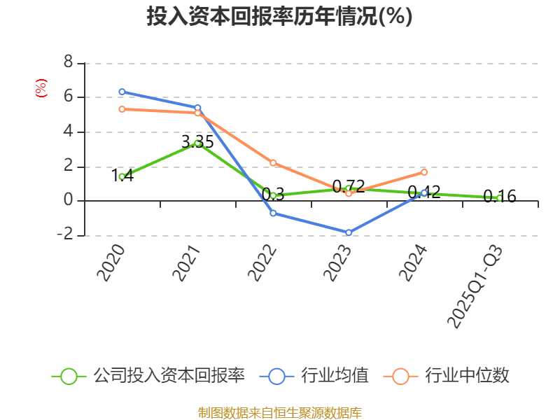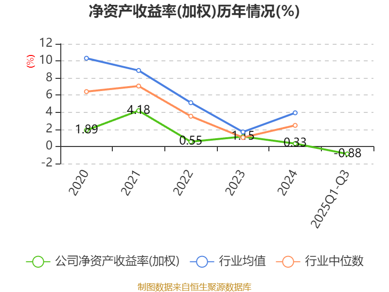 盈利能力方面, 2025年前三季度公司加权平均净资产收益率为-0.88%,同比下降1.39个百分点。公司2025年前三季度投入资本回报率为0.16%,较上年同期下降0.46个百分点。