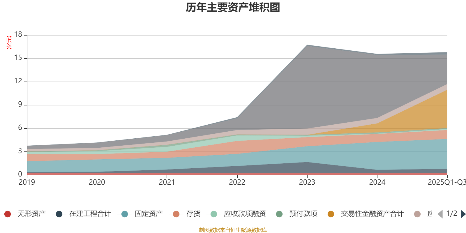 资产重大变化方面,截至2025年三季度末,公司货币资金较上年末减少53.22%,占公司总资产比重下降28.11个百分点;交易性金融资产合计较上年末增加330.43%,占公司总资产比重上升23.97个百分点;固定资产较上年末增加7.04%,占公司总资产比重上升1.27个百分点;在建工程合计较上年末增加32.72%,占公司总资产比重上升0.83个百分点。