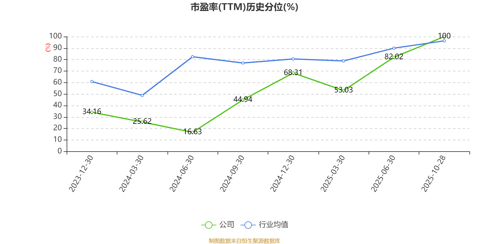 市盈率、市净率为负时,不显示当期分位数,会导致折线图中断。