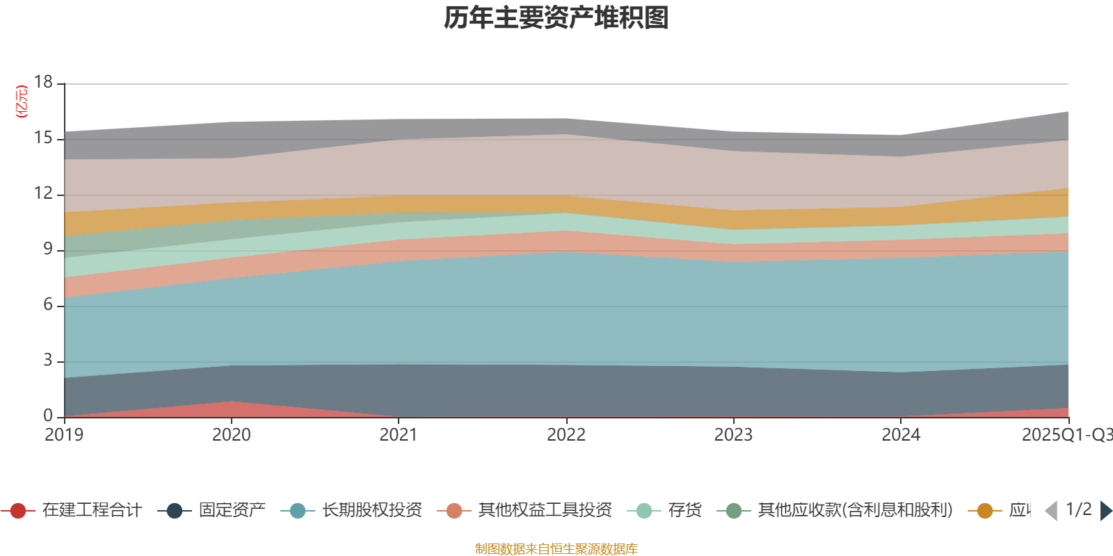 资产重大变化方面,截至2025年三季度末,公司长期股权投资较上年末减少1.11%,占公司总资产比重下降3.55个百分点;应收票据及应收账款较上年末增加55.72%,占公司总资产比重上升2.82个百分点;在建工程合计较上年末增加1409.18%,占公司总资产比重上升2.72个百分点;货币资金较上年末减少4.37%,占公司总资产比重下降2.09个百分点。