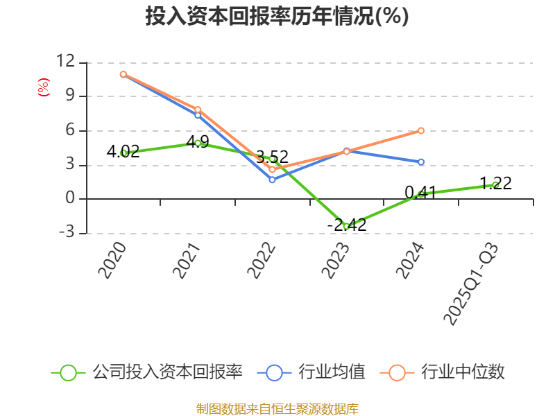 盈利能力方面, 2025年前三季度公司加权平均净资产收益率为1.33%,同比上升0.12个百分点。公司2025年前三季度投入资本回报率为1.22%,较上年同期上升0.04个百分点。