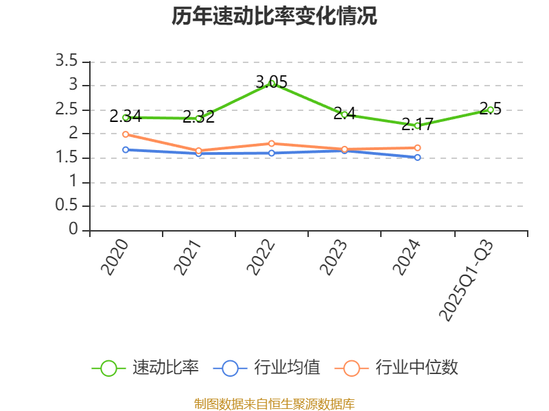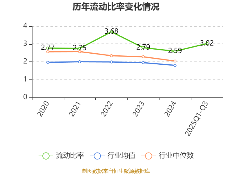 2025年前三季度,公司流动比率为3.02,速动比率为2.5。