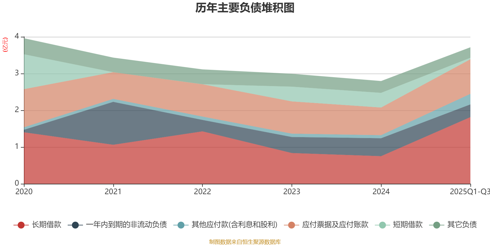 负债重大变化方面,截至2025年三季度末,公司长期借款较上年末增加141.76%,占公司总资产比重上升6.07个百分点;短期借款较上年末减少90.01%,占公司总资产比重下降2.39个百分点;其他应付款(含利息和股利)较上年末增加242.05%,占公司总资产比重上升1.19个百分点;一年内到期的非流动负债较上年末减少29.2%,占公司总资产比重下降1.11个百分点。