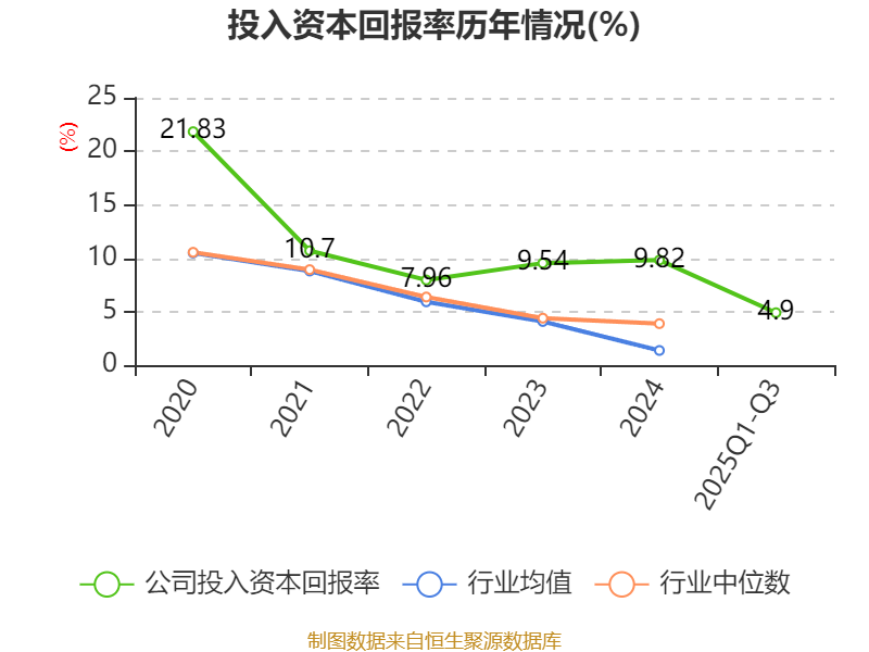 盈利能力方面, 2025年前三季度公司加权平均净资产收益率为6.68%,同比下降1.37个百分点。公司2025年前三季度投入资本回报率为4.9%,较上年同期下降1.45个百分点。