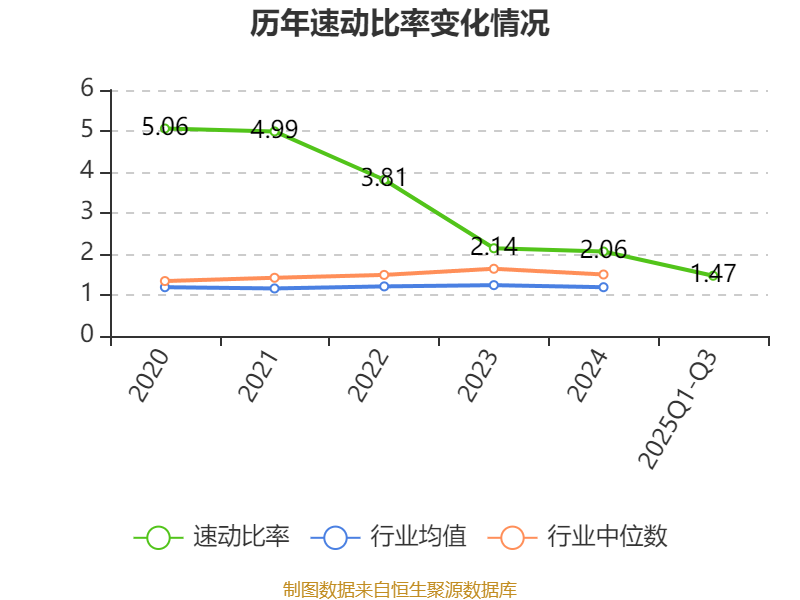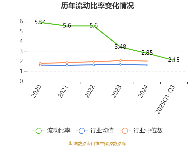 2025年前三季度,公司流动比率为2.15,速动比率为1.47。