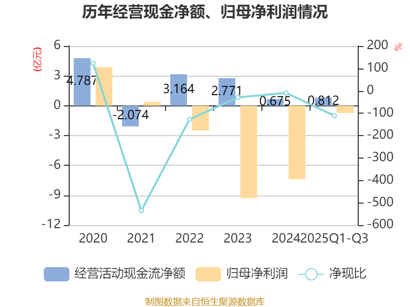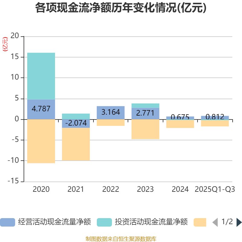 2025年前三季度,公司经营活动现金流净额为8116.22万元,同比增长15.85%;筹资活动现金流净额-1.48亿元,同比减少503.39万元;投资活动现金流净额-2423.95万元,上年同期为-3951.53万元。