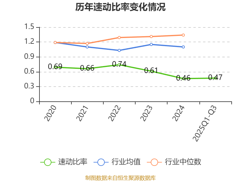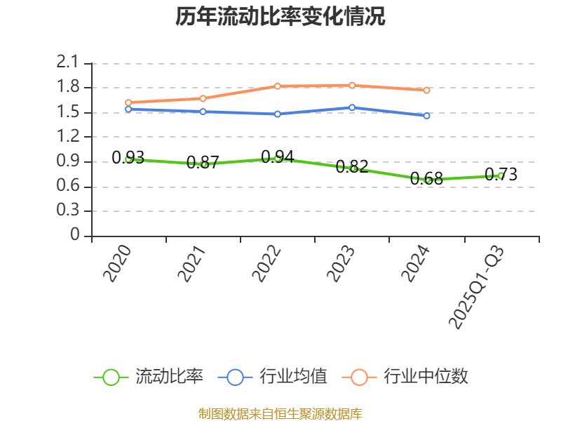 2025年前三季度,公司流动比率为0.73,速动比率为0.47。