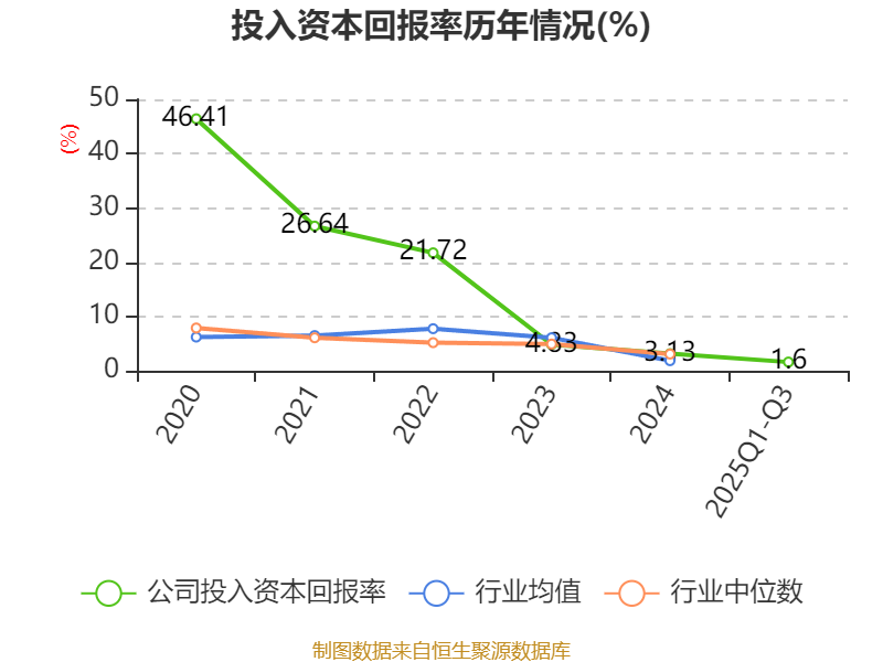 盈利能力方面, 2025年前三季度公司加权平均净资产收益率为1.74%,同比下降0.31个百分点。公司2025年前三季度投入资本回报率为1.6%,较上年同期下降0.15个百分点。